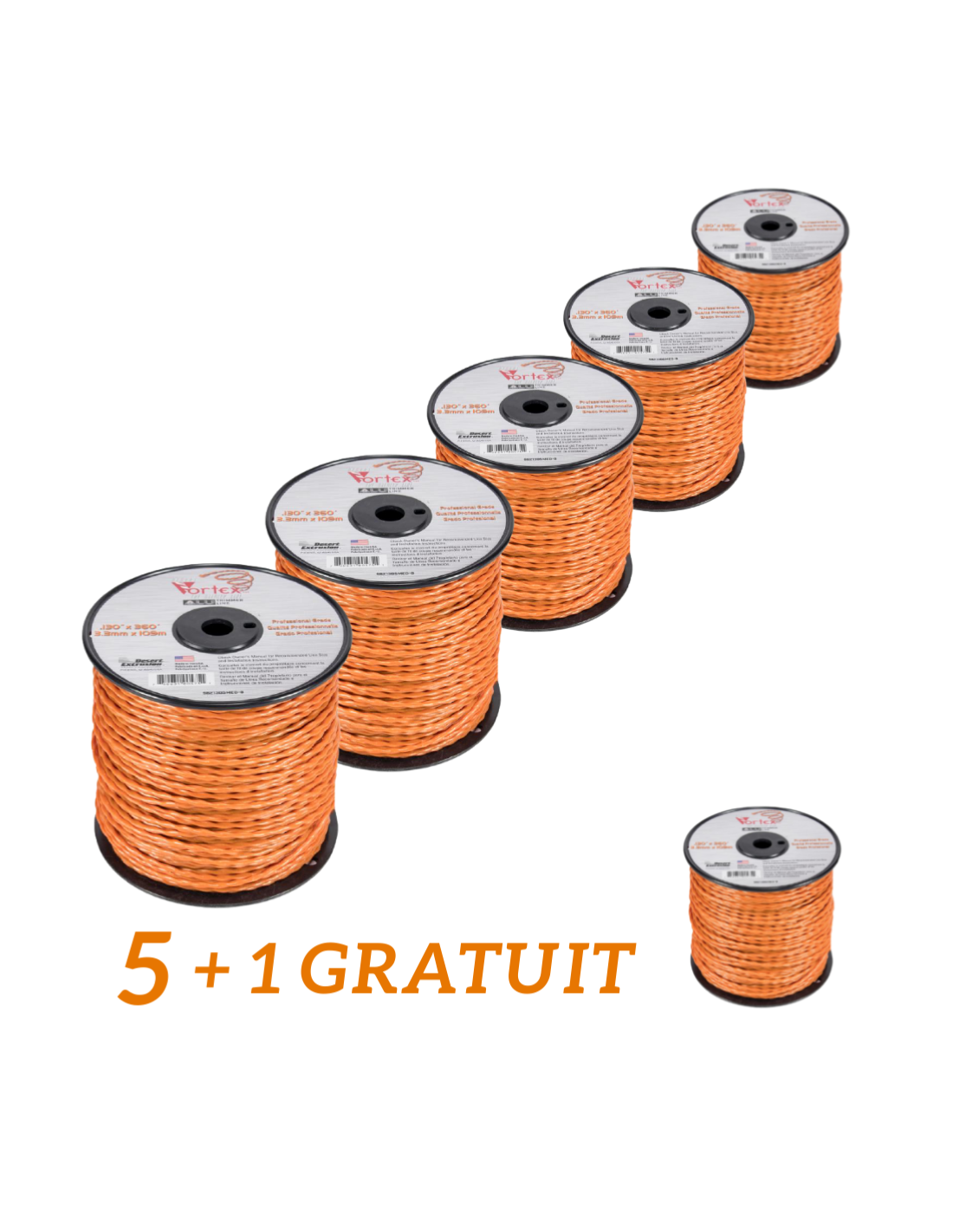 Tout savoir sur : Lot de 5 + 1 OFFERT Fil nylon Vortex rond ø 2.7 mm x 168 m