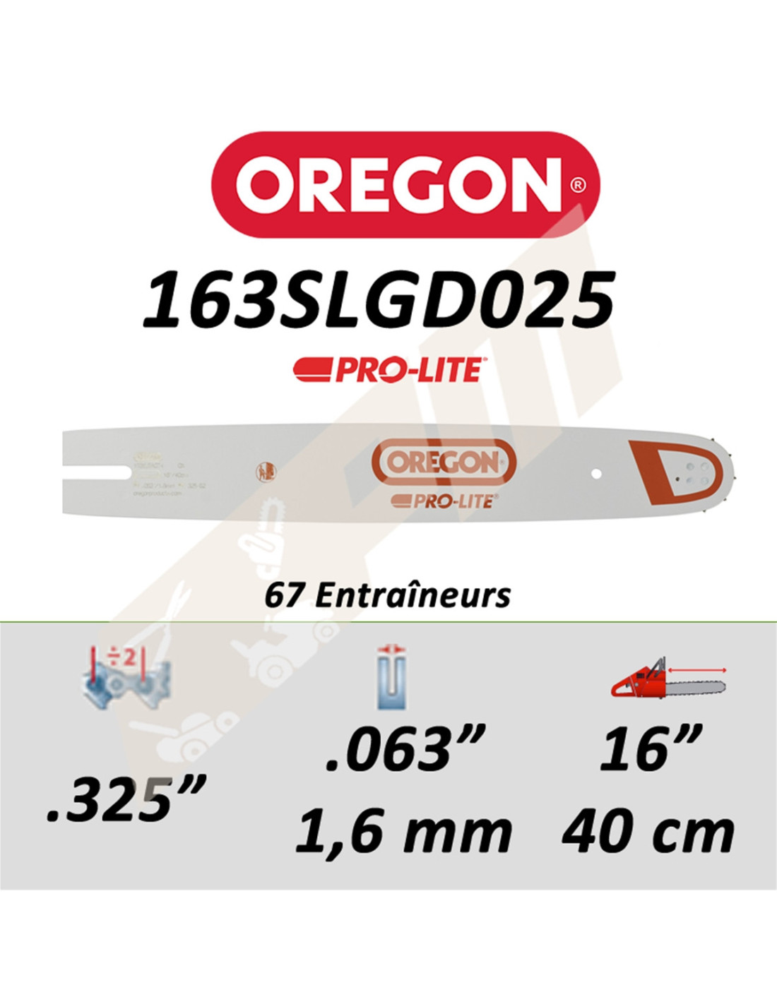 Tout savoir sur : Guide de tronçonneuse OREGON PROLITE 40 CM 325 - 1.6 - 67 maillons entraineurs pour Stihl
