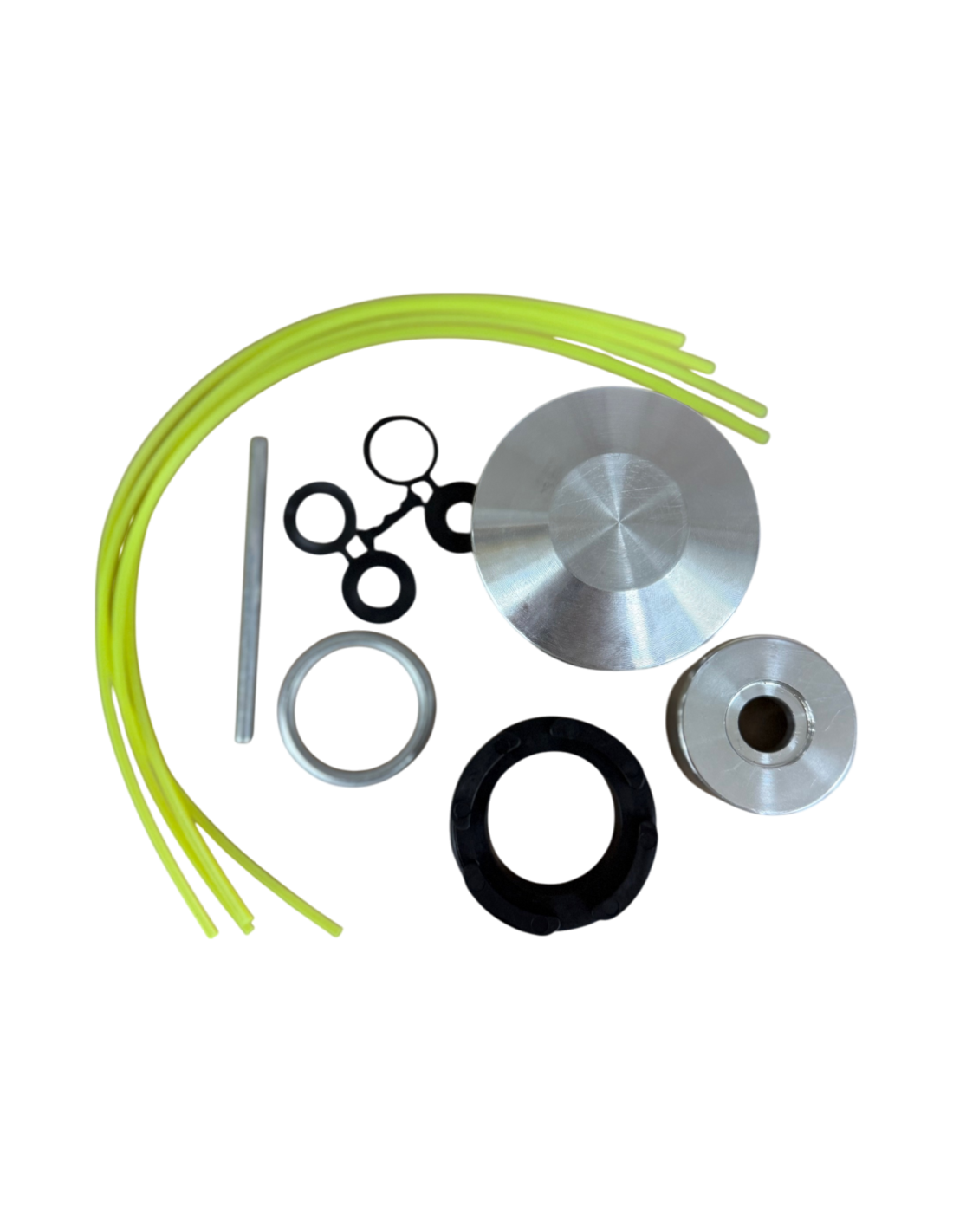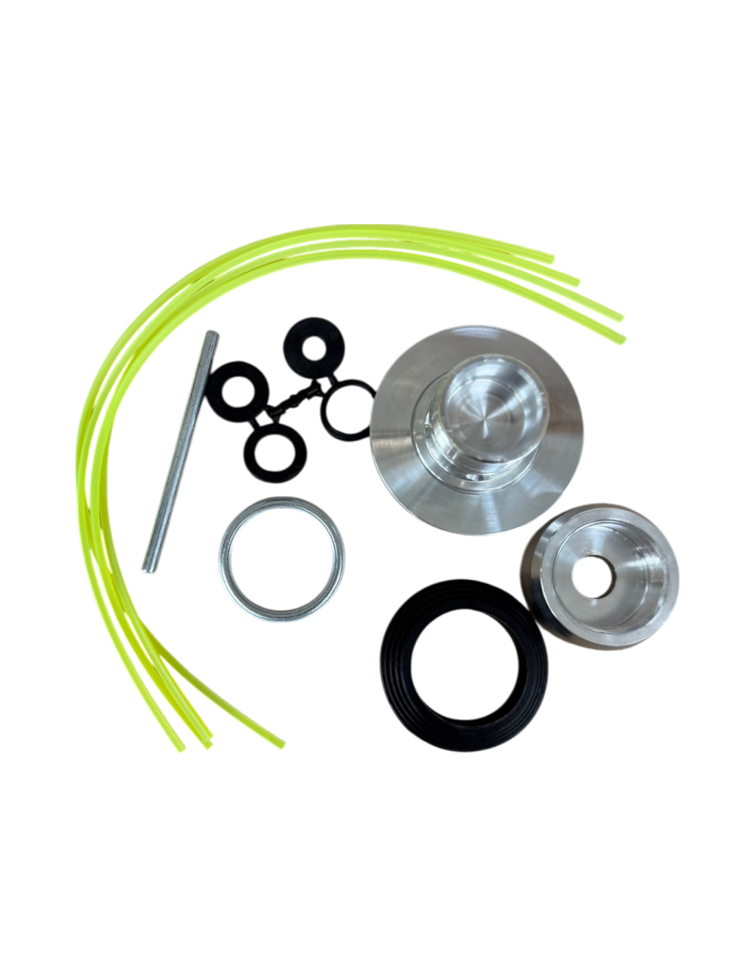 La tête fil Nylon Prince est livrée avec des brins de fil nylon, des bagues de réduction de montage et une tige de serrage..